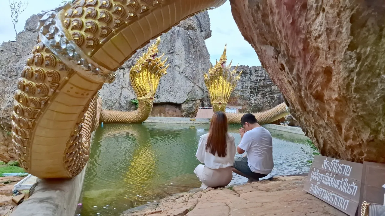 สำหรับวันนี้ น.ส.ดวงตา คำแพงศรี อายุ 32 ปี ครูโรงเรียนอนุบาลและสามี ตั้งใจขับรถยนต์ส่วนตัวจากบ้านมาทำบุญ เพื่อขอพรหน้าที่การงาน และที่ขาดไม่ได้คือการขอโชคลาภขอเลขเด็ดไปเสี่ยงโชคในงวด 1/7/67 เริ่มโดยการนั่งคุกเข่าพนมมือตั้งจิตอธิษฐานขอโชคลาภ หน้าที่การงาน ก่อนก้าวขึ้นไปยืนให้หน้าผากจรดกับปลายนิ้วชี้ ของรูปปั้นองค์ปู่มุจลินท์นาคราช พญานาค 7 เศียร ที่ตั้งอยู่ข้างสระโบกขรณี บ่อน้ำศักดิ์สิทธิ์ที่ให้ความสมหวังในเรื่องความรัก