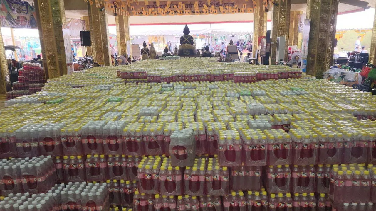 ขณะที่ หลวงพี่น้ำฝน เผยว่า สำหรับน้ำแดงจำนวน 2,000 โหล ที่เห็นอยู่นี้สาธุชนที่มาขอโชคลาภกับกุมารสมบัติชื่อเล่น คุณน้อง บ้านอยู่ อ.ไทรน้อย จ.นนทบุรี นำน้ำแดงใส่รถบรรทุก 6 ล้อใหญ่บรรทุกมาถวาย เมื่อตอนเช้ามืดของวันที่ 2 ก.ย. 2567 หลังหวยออกได้ 1 วัน อาตมาได้สอบถามว่า ได้มากราบไหว้ขอโชคจากกุมารสมบัติ เมื่อวันที่ 27 ส.ค. 2567 แล้วขอโชคเขย่าเซียมซีได้เลข 606